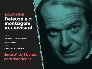 É com muita alegria que apresentamos para todo o coletivo edt. o curso “Deleuze e a Montagem Audiovisual”! O curso apresenta uma introdução ao pensamento do filósofo Gilles Deleuze sobre a montagem audiovisual a partir dos conceitos de imagem-movimento e imagem-tempo. Oferecido pela edt. – Associação de Profissionais de Edição Audiovisual, o curso será ministrado [...]